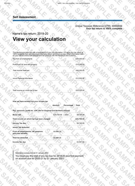 A tax year overview summarises your income, deductions, reliefs, allowances, and tax calculations for a specific tax year.